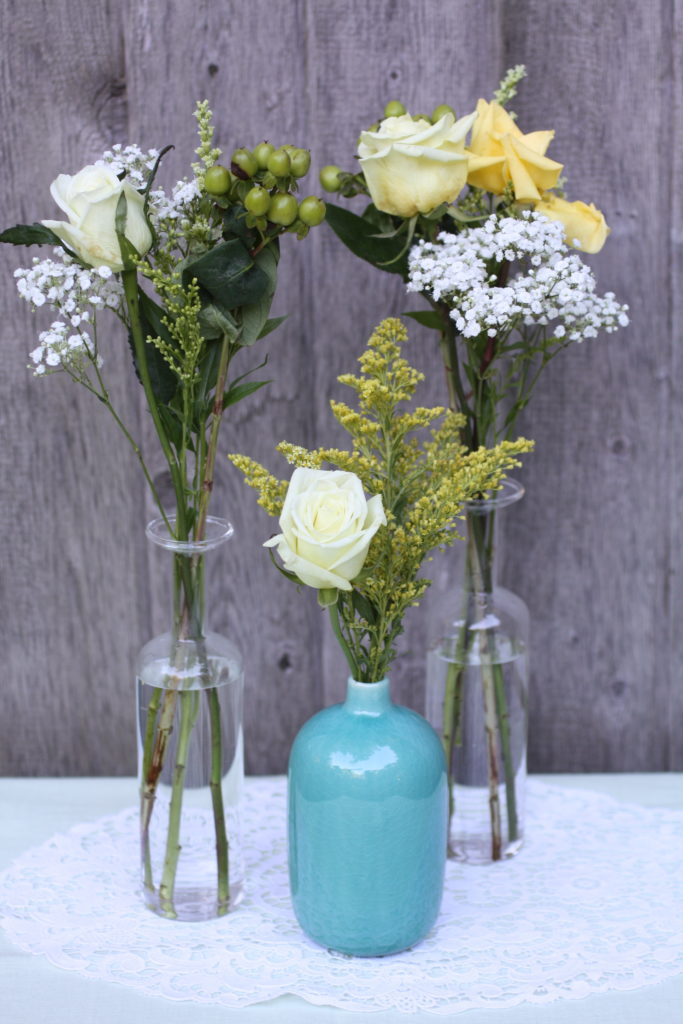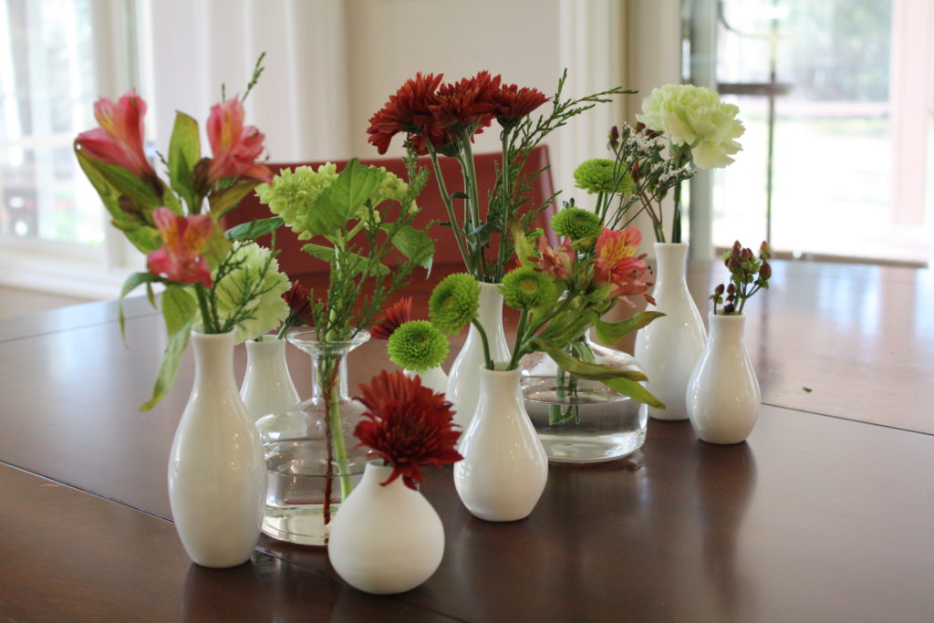 I love these pretty vessels because you can still make a gorgeous flower arrangement without going too high and preventing your guests to seeing each other’s faces at the table.